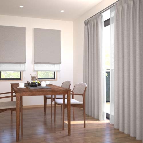 形状記憶はヒダが美しく、カーテンを寄せたときのまとまり感が特徴です。独自の特殊な製法で施された形状記憶加工により長期間美しいヒダが持続します。ご使用状況にもよりますが約8回程度の洗濯でもヒダが崩れません。