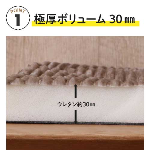 ウレタン30㎜の極厚ホットカバー。滑り止め加工もついており、冬場のラグにおすすめです。