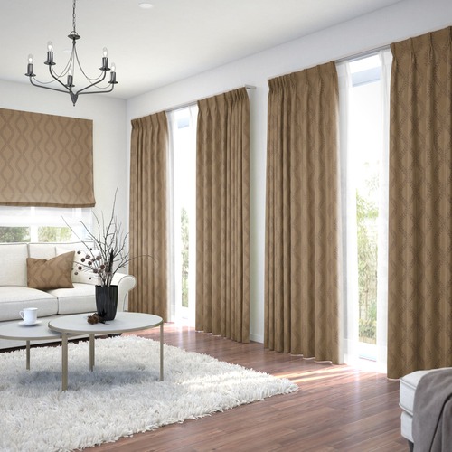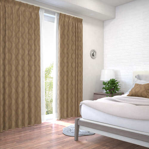【オーダー】遮光3級裏地付 リッチナチュラル 形状記憶付 波型のジャガード CJ33213(ブラウン)