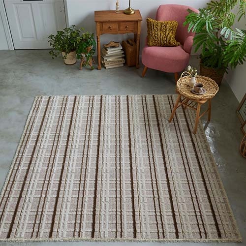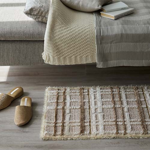 さまざまな太さのラインでチェックを演出しています。防ダニをはじめ、アレル物質などを吸着し、快適な室内環境を作るアレルブロック機能もあり。