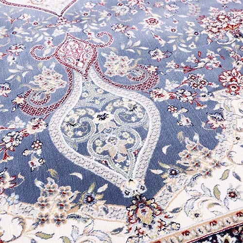 クラシック ウィルトン フラワーモチーフのメダリオン柄 輸入柄物カーペット「ザオラ(ブルー)」