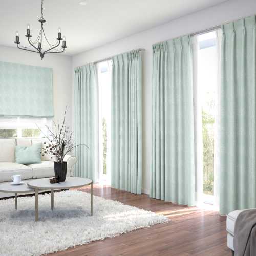 【イージーオーダー】遮光3級 エレガンス 光沢感のある生地にクラシカルな模様の形状記憶付 PSD4020(ブルーグリーン)