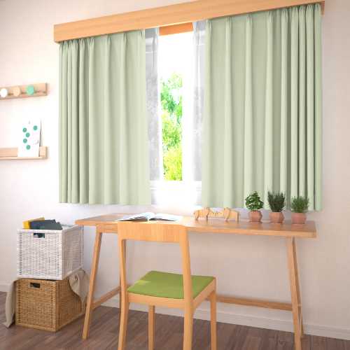 【イージーオーダー】遮光2級 ベーシック 光沢のある無地の形状記憶付 PYD2051(ブル―グリーン)