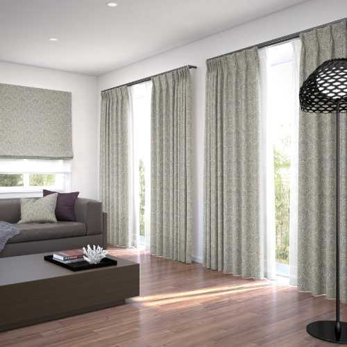 細やかなリーフ柄に小花を散らしたアンティーク調のプリントカーテンです。