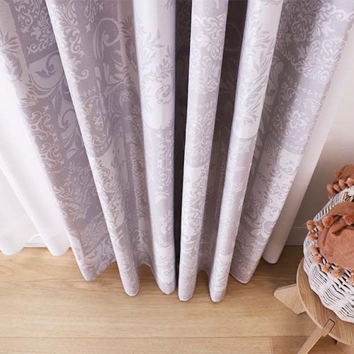 【オーダー】遮光3級裏地付 クラシック タイル調に組み合わせたオーナメントモチーフの形状記憶付 BW31334(グレー)