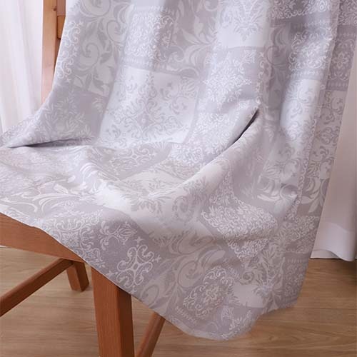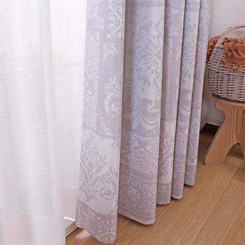 エレガントなオーナメントのモチーフをタイル調に組み合わせたドレープカーテンです。流行の床色に合わせやすくなっております。