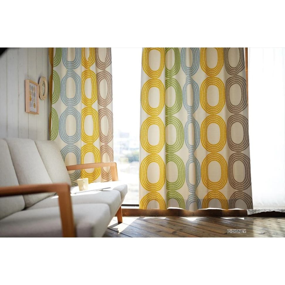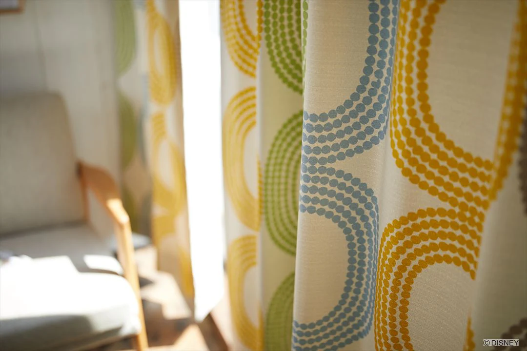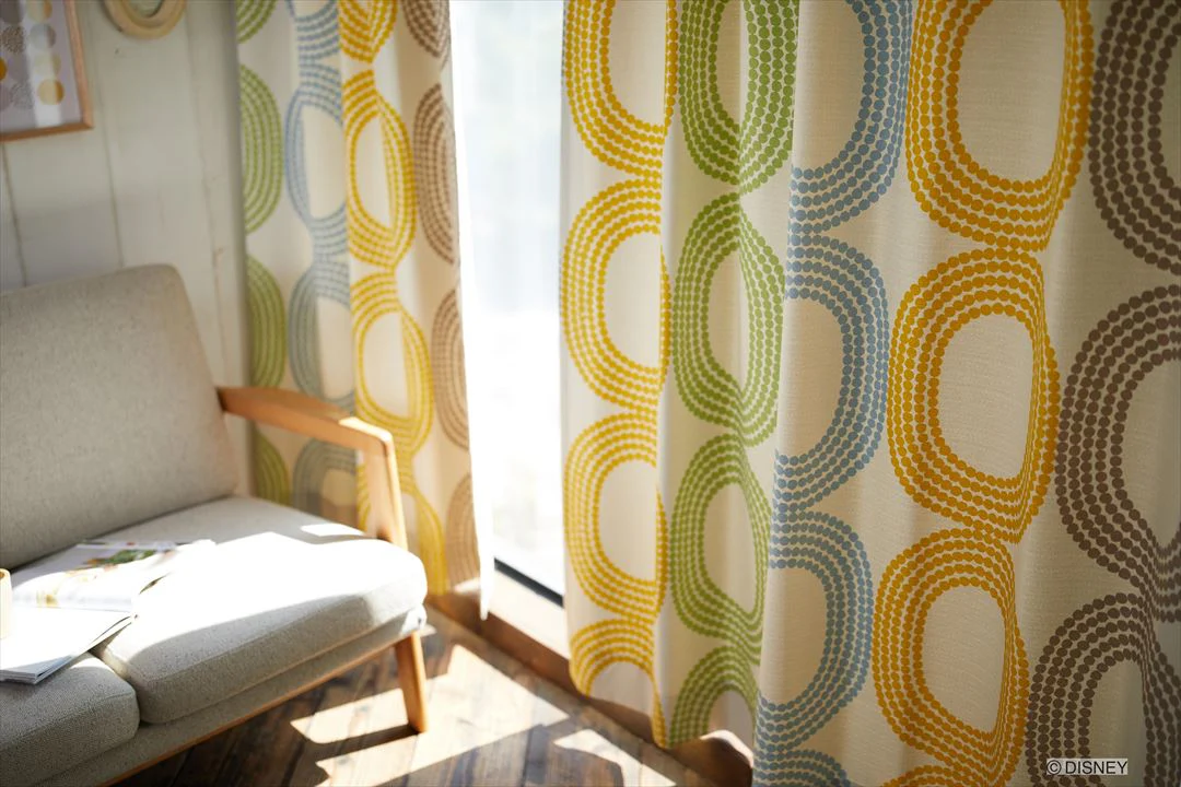 ドットの中に隠れミッキーがいるモダンなドレープ。