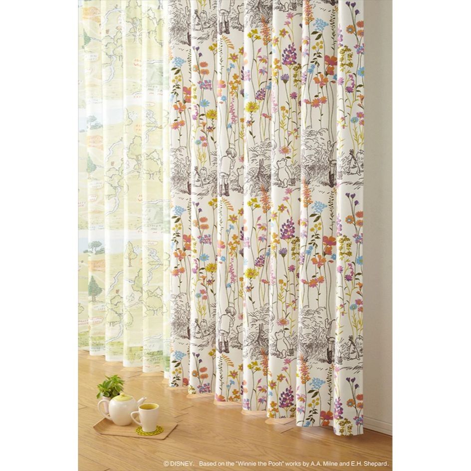 【EC限定】【1.5倍ヒダオーダー】DISNEYディズニーホームシリーズ 遮光2級 M1106 POOH/Garden place/プー/ガーデンプレイス(ピンク)